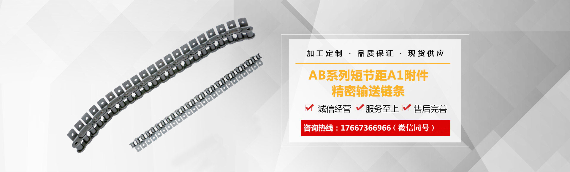 1、鏈條產(chǎn)品有各種不銹鋼、碳鋼輸送鏈條、雙節(jié)距輸送鏈條、空心銷軸鏈條、不銹鋼塑料平頂鏈、不銹鋼精密滾子鏈、特殊工礦輸送鏈、耐高溫輸送鏈條、非標鏈條、彎板非標鏈條、大節(jié)距輸送鏈條、各種鏈條用滾子(材質碳鋼、不銹鋼)等。